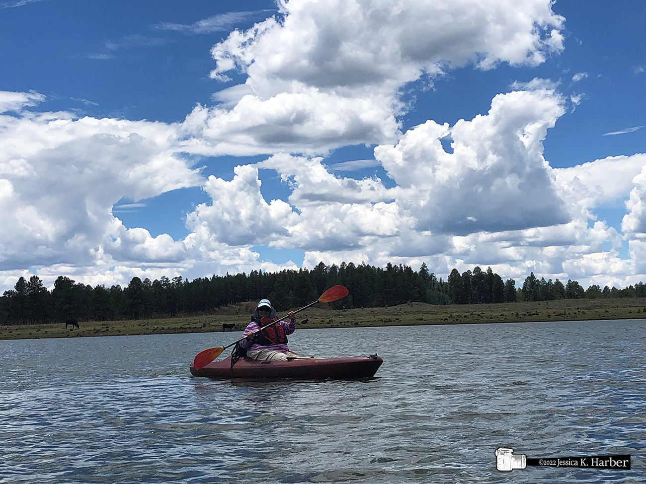 I was kindly invited to spend some time at a friend’s property near Show Low, AZ. One day, my friend Bobbi invited me to go kayaking to the southeast of Show Low. It turned out to be an exceptionally beautiful day with a blue sky and puffy white clouds. After we kayaked, Bobbi gave me a driving tour of the area. This was eye-opening for me because I had no idea Arizona had any landscape like this. Also, “note to self”: Never go anywhere with Bobbi without my camera. We saw all this amazing scenery and I had only my phone with me (which does not take good photos). It all turned out OK, however, because I was so impressed with the area, it became my next camping spot.