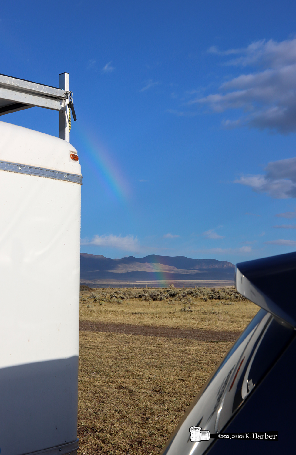 On the way to my next destination, I found camping by a reservoir in the booming metropolis of Meeteetse, Wyoming, population 309. The short stay was pretty and eventful: Water overlook, distant snow-capped mountains in two directions, a rainbow, and even a hail-filled storm. After that, a few sights along the road to my next stop.