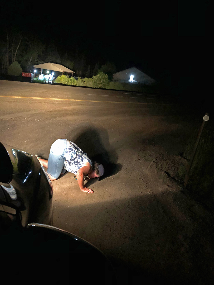 Continuing from the previous post, I was camping with friends near the tiny town of Placerville. As I mentioned before, one day, a friend and I went exploring where we saw incredible beauty but where we enjoyed ourselves so much that we stayed too high too late. We did not get lost but ended up on a mountain-side rabbit trail after dark with a high wall (and a tire-sized ditch) on one side and a drop into oblivion on the other. I was driving and I have a fear of heights. To further complicate matters, we came to a point where part of the road was washed away on the oblivion side. Fortunately, my friend Rachele got out in front of the car and successfully talked me past this frightening point, but it was truly terrifying for me. What an experience! (We did receive a reward for surviving this adventure, because as we emerged from the last wooded area along the route, we stumbled onto what was to be our next camping spot. And it had a view like no other. More later.)