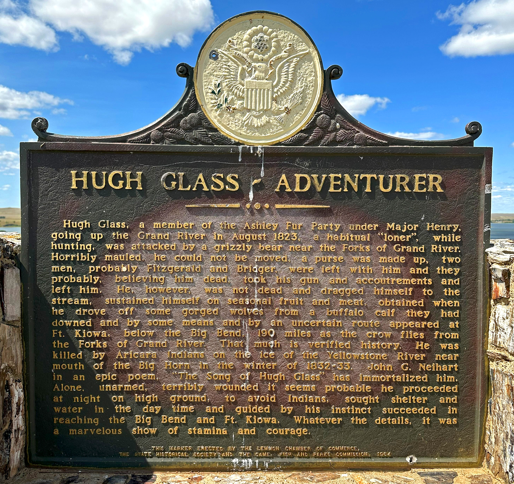 Next, I headed into South Dakota and camped at Hugh Glass Lake. At the time, the camping was free, but I just read they are now charging $16.91/night (a strange amount!). I did not know until I spoke with a couple camping next to me that Hugh Glass is the man about which “The Revenant” was made. I haven’t seen this film, but I understand his is a remarkable story of survival.